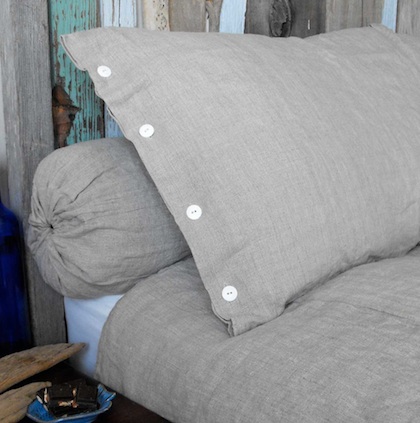 When it came to me I used it to store lavender. Years later, by good fortune, I found a natural linen with the same wonderful texture and feel, and I decided to make bedding in this simple, elemental tradition.